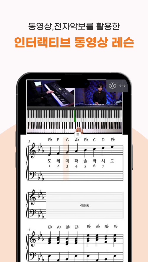 모두의음악 강의는 단순히 영상만 시청하는 전통적인 방식을 넘어서, 학생들에게 효과적인 음악 레슨 경험을 제공합니다. 그 비밀은 바로 모두뮤직의 인터랙티브 학습 기술에 있습니다. 고화질의 동영상과 악보가 동시에 싱크되어 다양한 기능을 제공합니다.