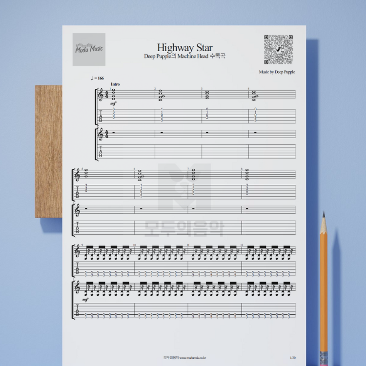 Deep Purple의 "Highway Star"기타 악보입니다.